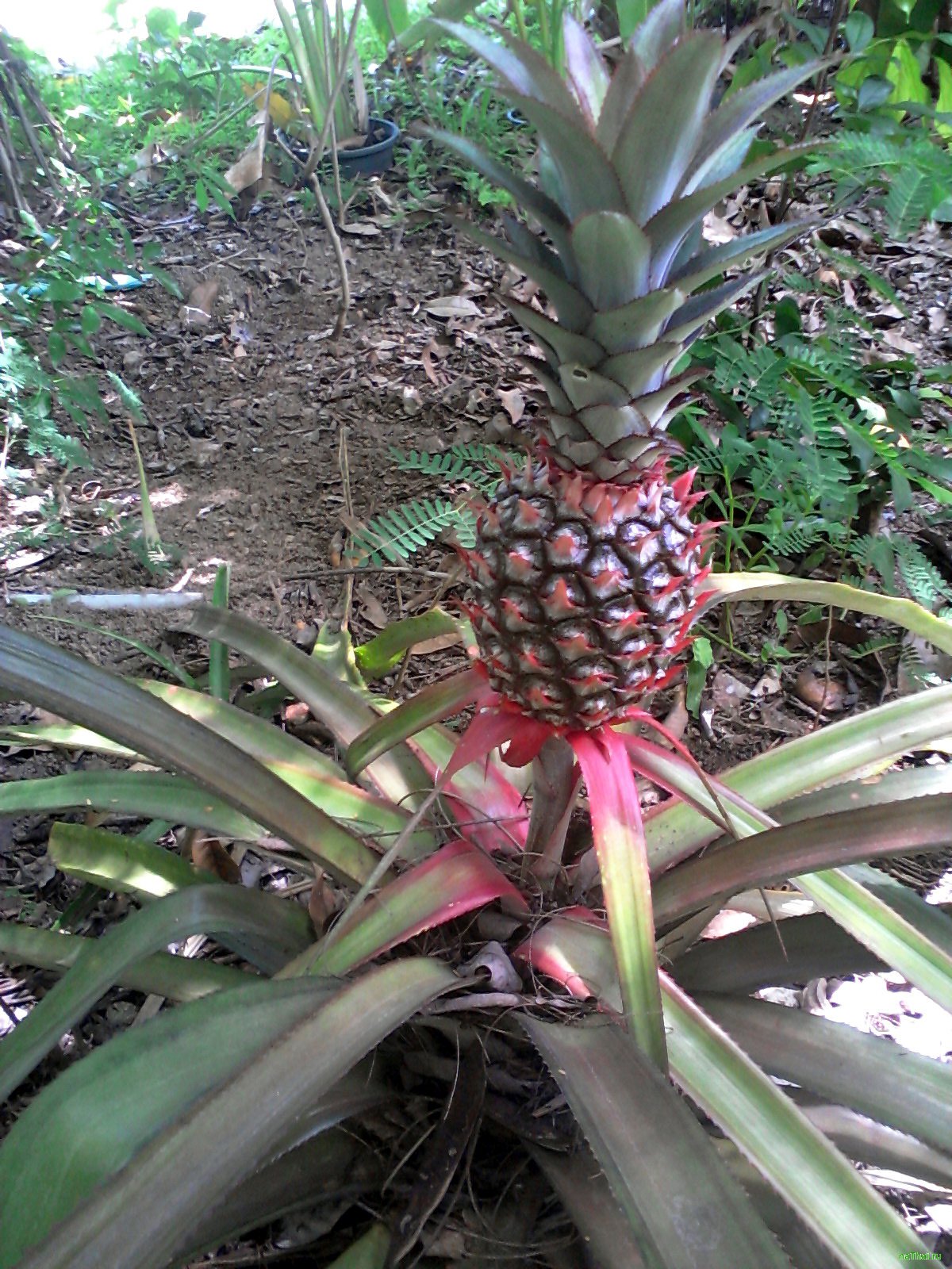 Растет ананас из земли. Первый фрукт дает только через год. Процесс роста можно наблюдать на фото.