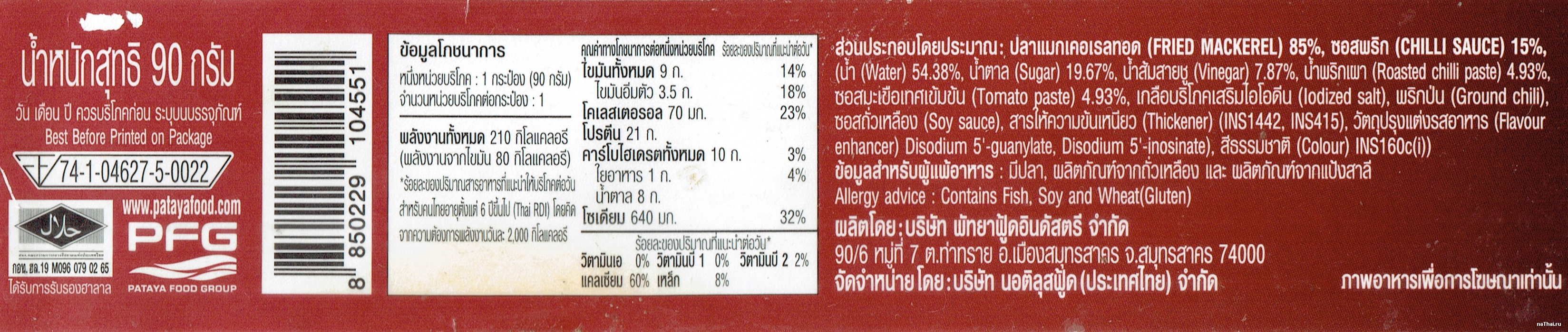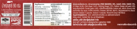 Ingredient: Fried Mackerel, Chilli Sauce, Water, Sugar, Vinegar, Roasted chilli paste, Tomato paste, salt, Ground chilli, Soy sauce, Thickener, Flavour enhancer, Colour (ОПАСНО!!! 1442 + 621)