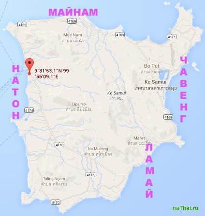 Координаты на карте в google map: 9.531422,99.935846 (прямая ссылка для GPS навигатора).