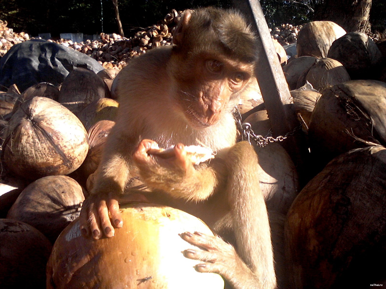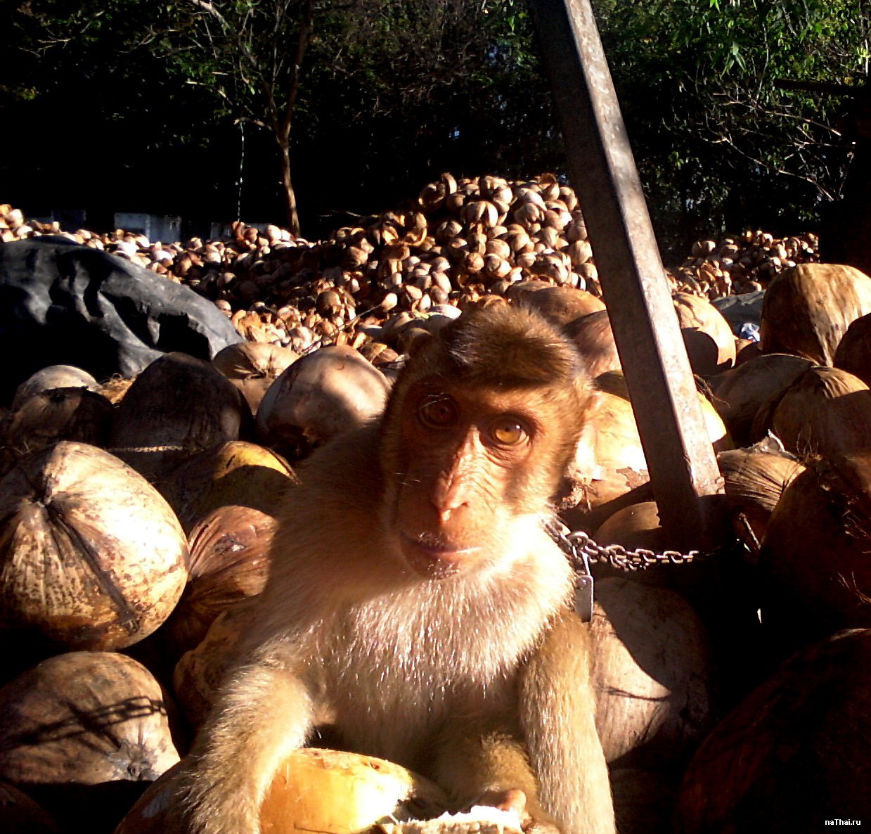 На ферме можно поиграться с обезьянками, которые научены лазить по кокосовым пальмам и срывать кокосы. Иногда лазиют и тайцы, но это опасно, хотя бы в плане того, что на кокосах иногда наверху живут змеи.