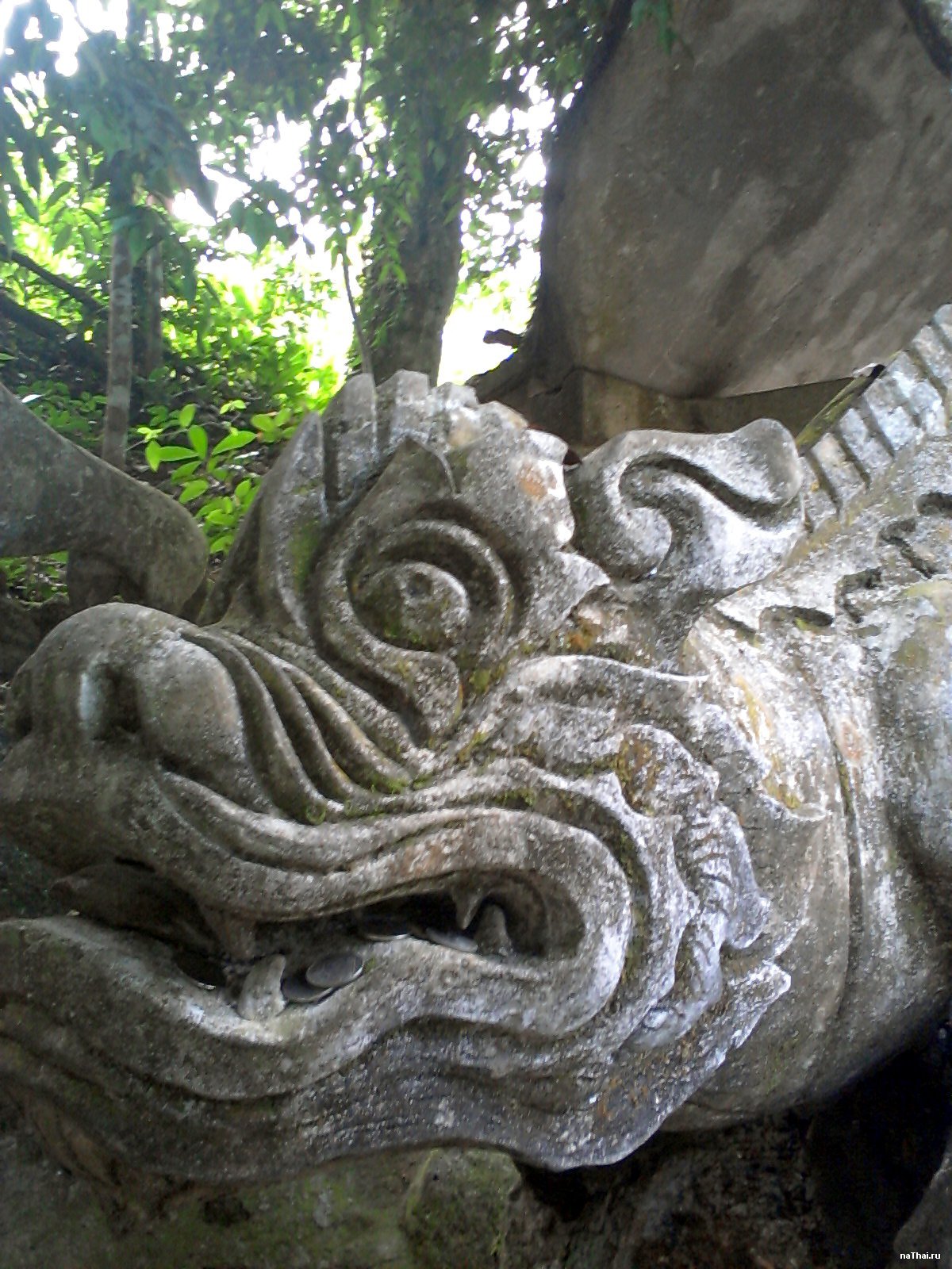 Большая голова дракона и статуя.