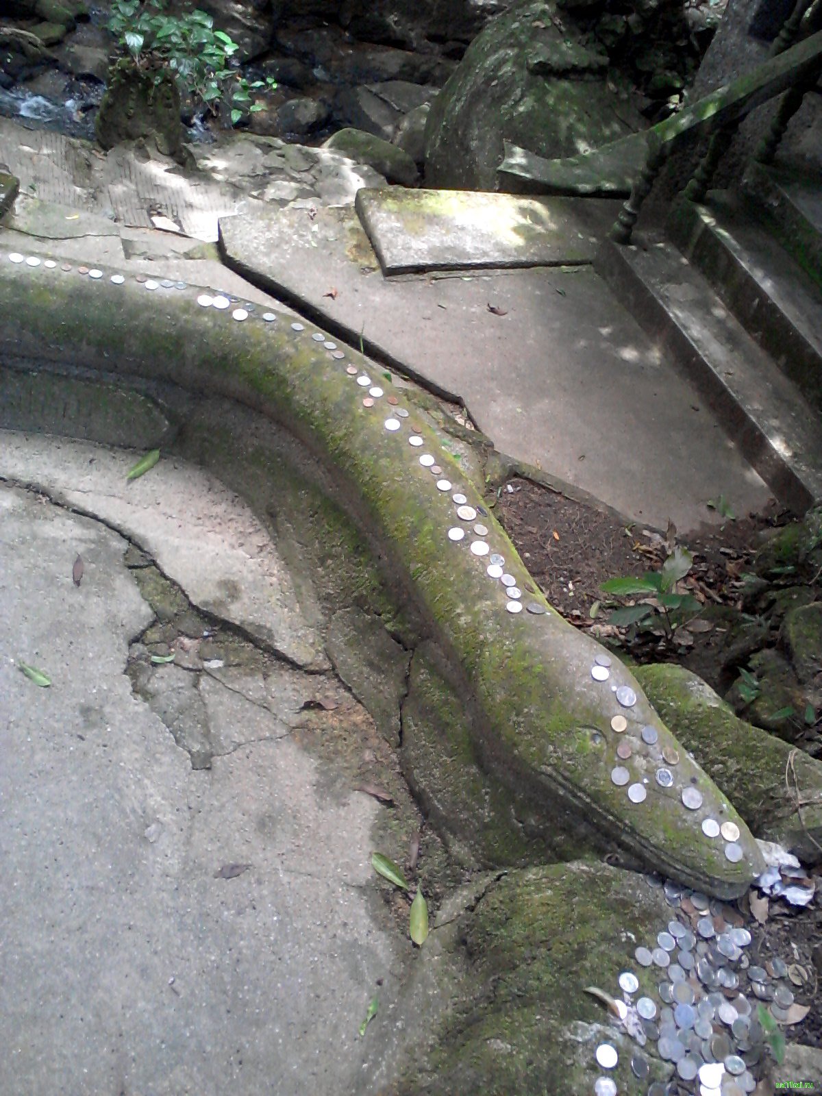 Странный магический сад совмещенный с водопадиком и маленькой чашей, но больше он знаменит каменными или бетонными скульптурами.