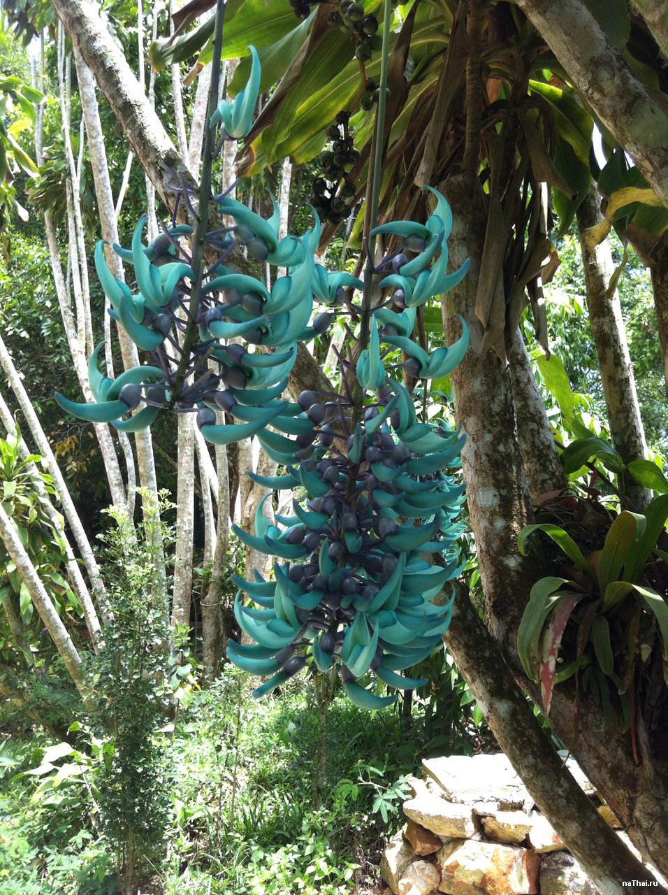 Ну и вот она причина почему сад назвали магический. Вот такое растение, захватывает дерево и потом с него свисает вот такими зелеными и фиолетовыми цветками. Воистину космический и магический цветок. Знать бы еще как он называется..